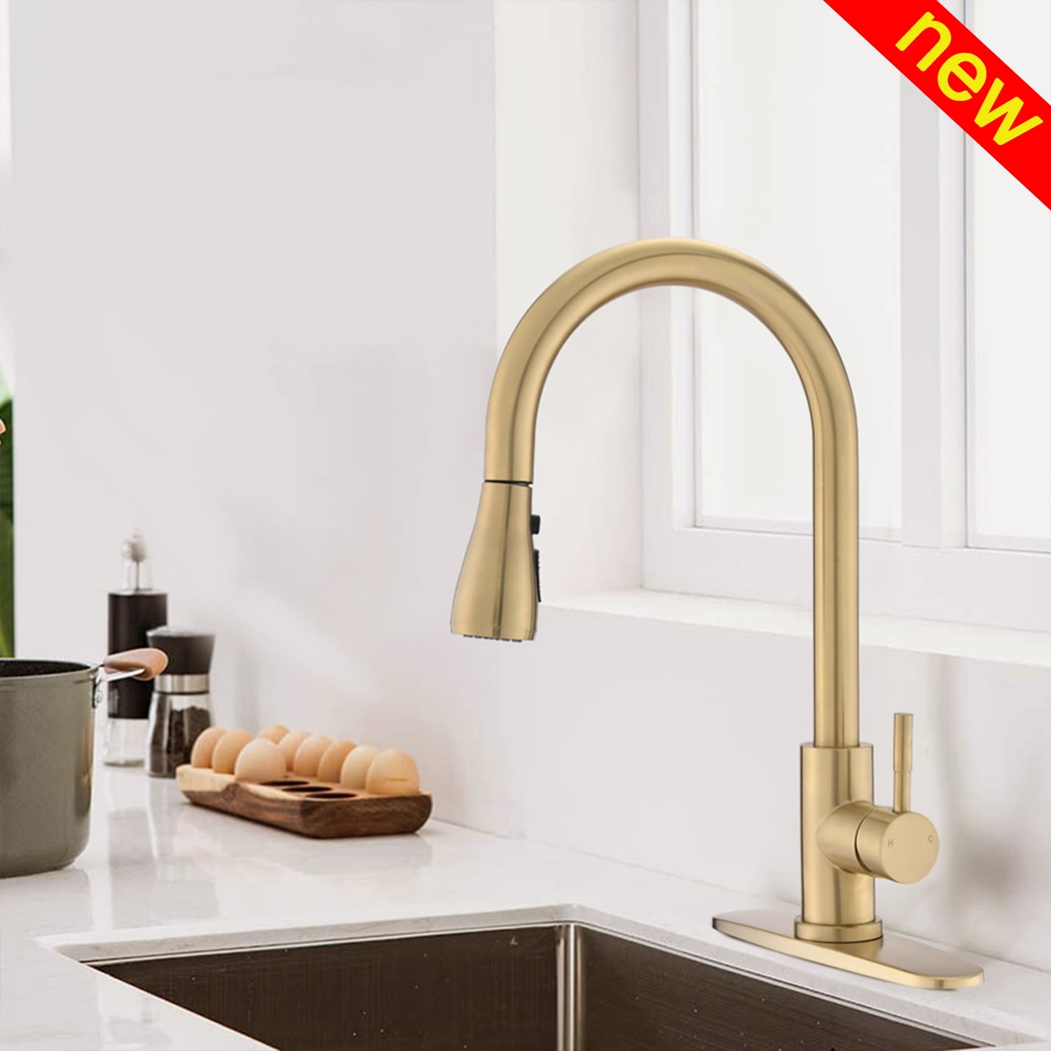 Kitchen Faucet With Pull Out Sprayer Pull Down Kitchen Taps Spray Head Single Gap 3 Holes With Plate Matte Black Gold Brushed Nickel Stainless Metal Walmart Canada